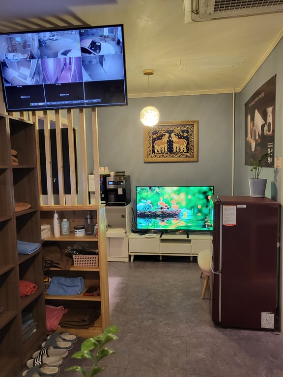 ▼샵구조1인룸 5개, 2인룸 1개 , 사무실 1개, 사워실 2개, 실장실 1개, 관리사 숙소 (방 2개, 샤워실, 거실, 주방 약 15평)