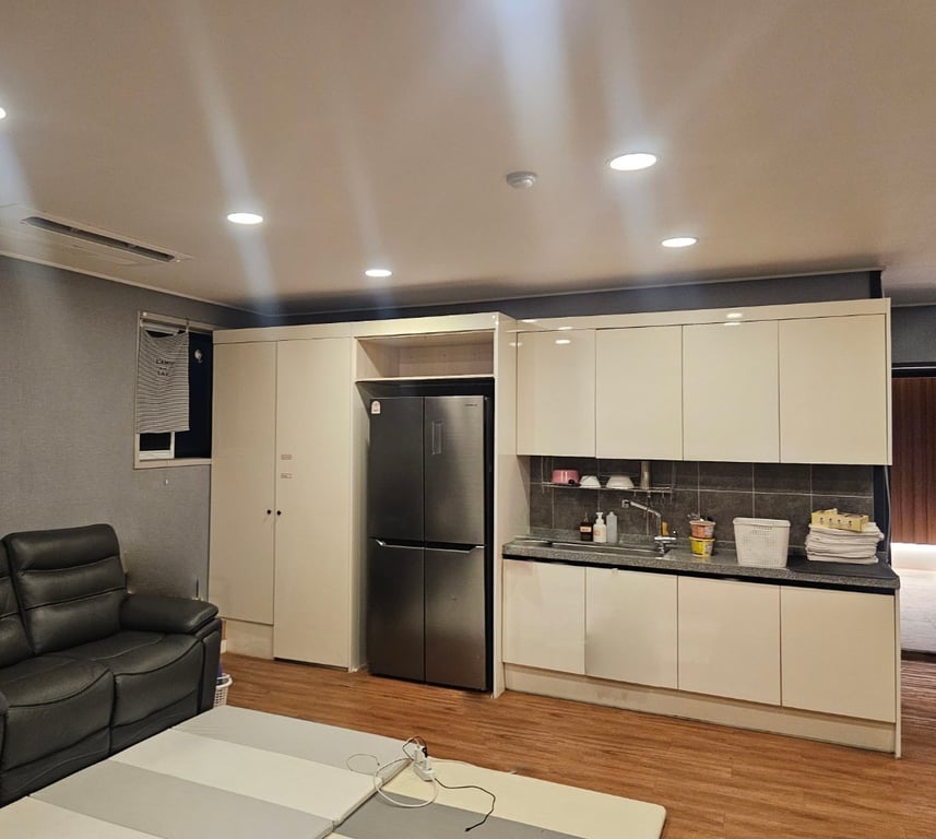 창고2개+큰대기실1 부엌완비+락카룸 ( 숙식가능한 방1개 있습니다.)