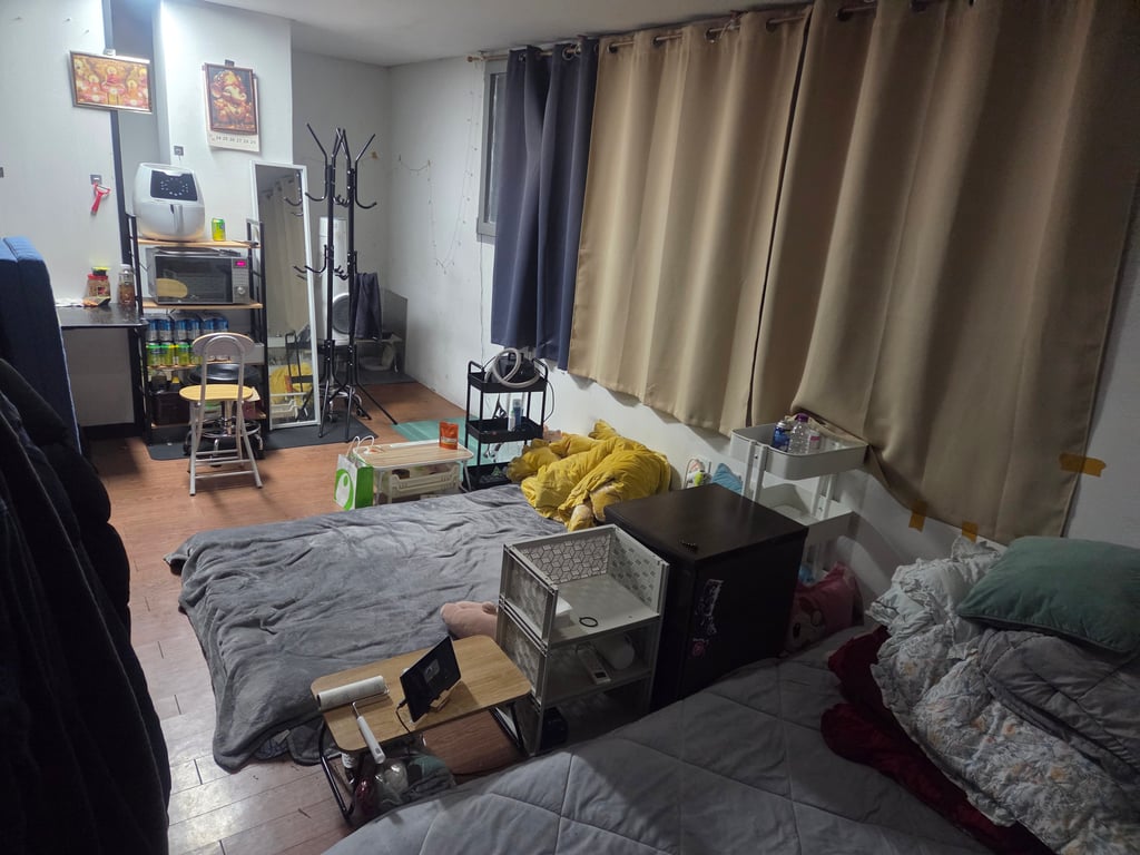25평중 12평이 대기실입니다. 대기실이 넓어 숙소를 따로 구할 필요 없음