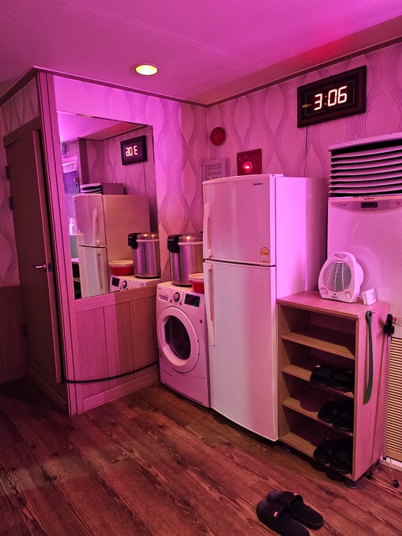 1인실 6개, 직원방, 주방, 샤워실 겸 화장실 2개, 창고(비품실)