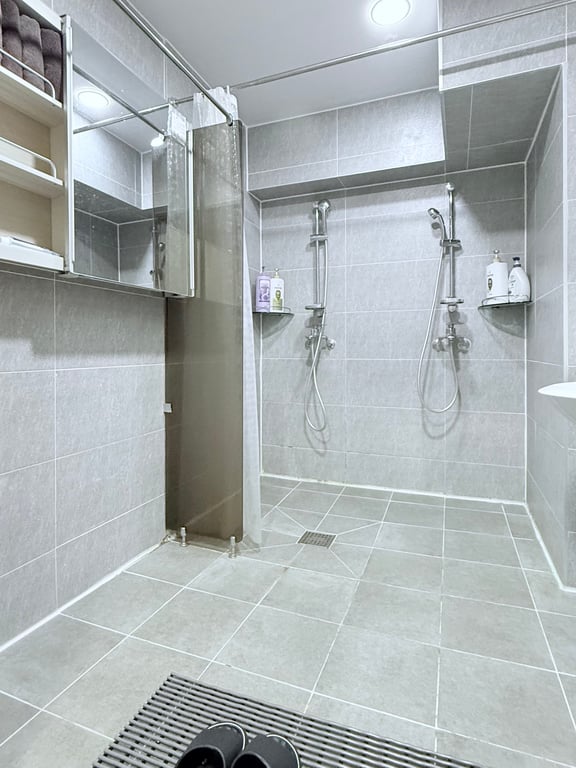 - 대형샤워실(2인실) 2개, 세탁실 1개(LG 대형통돌이 1대, LG/Samsung 건조기 2대), 주방(대형냉장고 1개. 등)