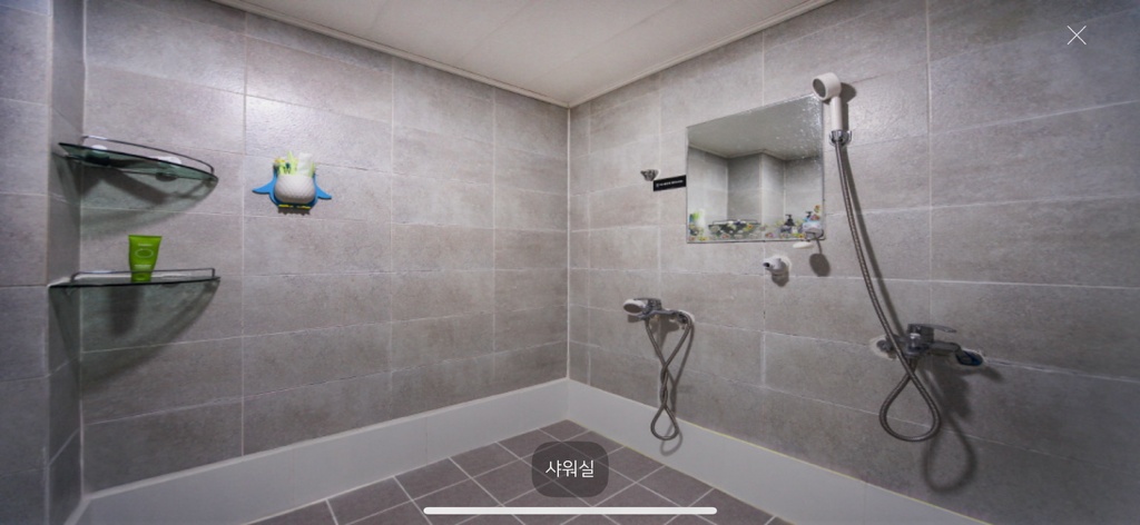 1인실 6개(커플실1개), 부엌1개, 큰 샤워실 1개.
