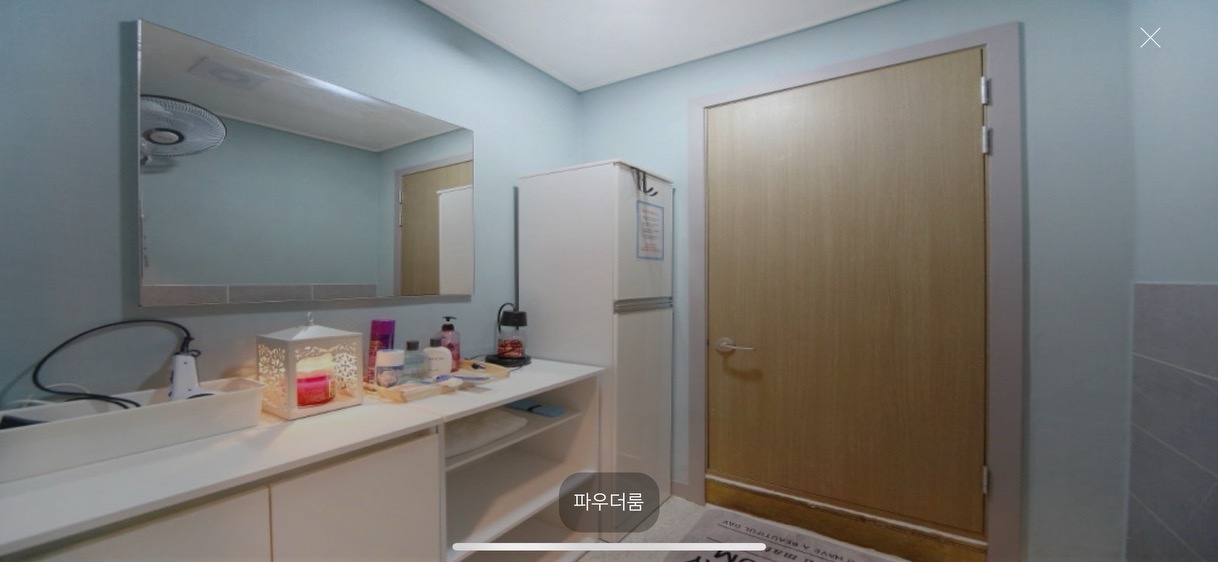 샤워실 2개. (손님용 1개. 직원용 및세탁실 1개), 주방 1개, 창고1개.