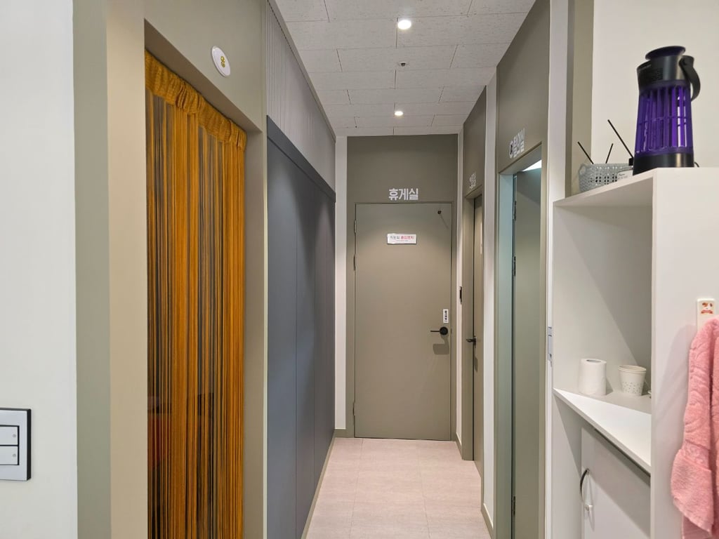휴게실 : 살림 가능한 넓은 휴게실(주방시설, 세탁기 건조기 냉장고 정수기 인덕션 설치 됨), 온돌 설치되어 있어요.
