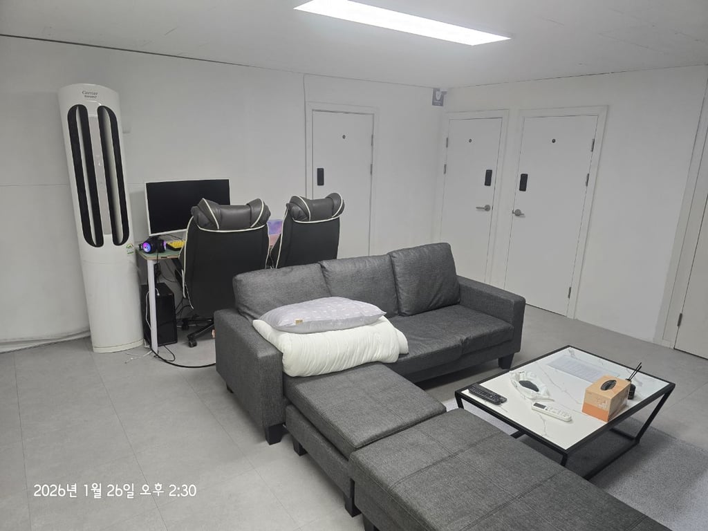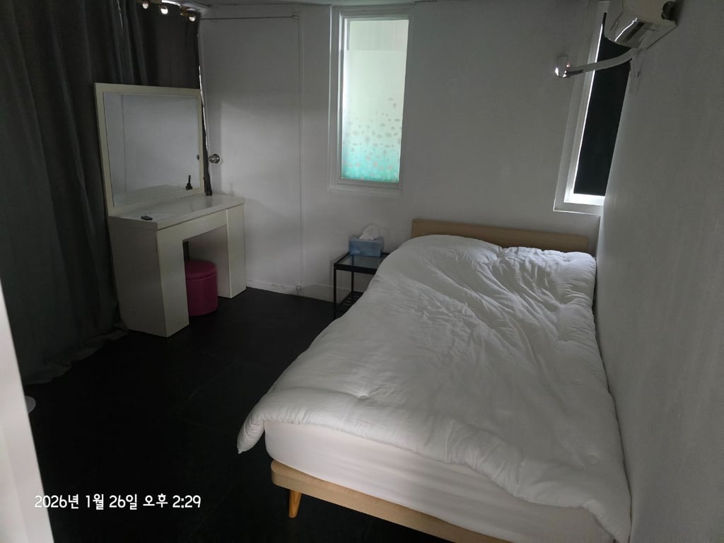 1인 방 6개 내부 샤워실 겸 화장실 거실 각방 에어컨 주방시설 세탁 건조기