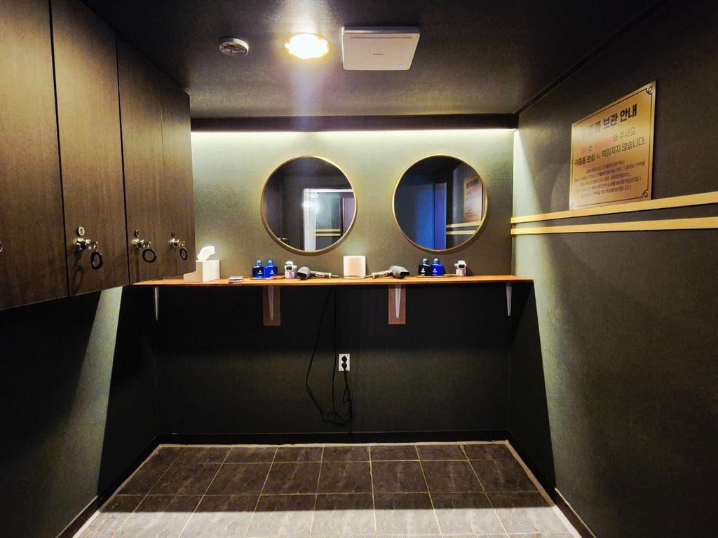 카운터, 실장방, 배드룸 5, 샤워실, 세탁실, 셋팅룸 겸 탈의실, 관리사 대기실, 관리사 샤워실, 주방, 손님 대기실
