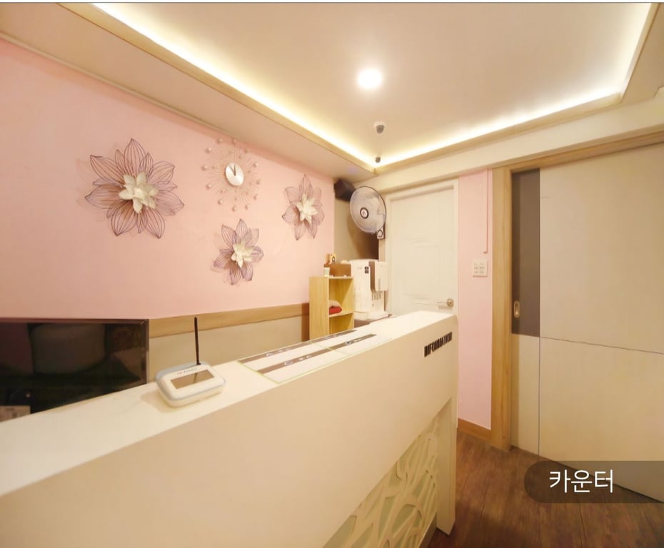 카운터, 카운터방 1개, 1인실 5개, 2인실 1개, 관리사 대기실 1개, 흡연실 1개, 창고 1개, 샤워실 1개, 화장실 , 주방