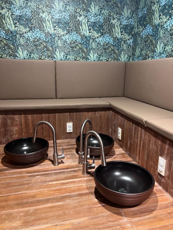 1인실 6개 / 커플실 1개 / 샤워실 2개 / 주방 및 세탁실 1개 / 직원휴게실 2개 / 족욕존 1개