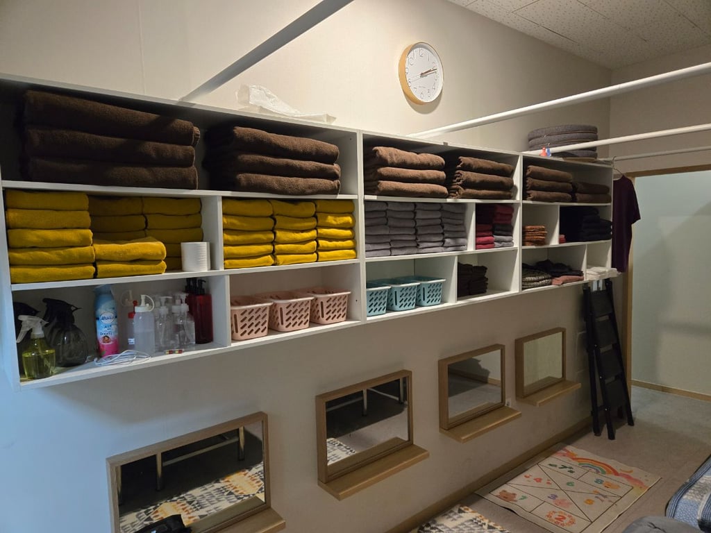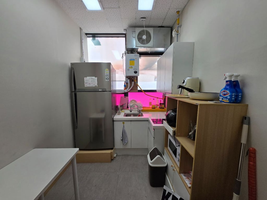 관리방 6 큰 대기실1 실장방1 주방1 다용도실1 (삼성최신형) 세탁기1 건조기1 통합 냉난방기 설치 (전기세절약)