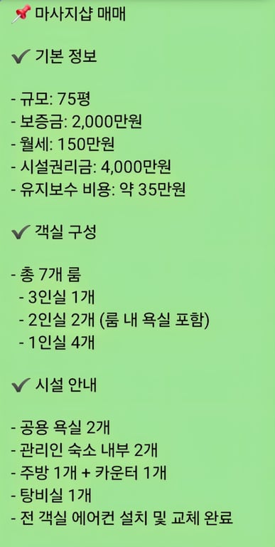 태국 마사지샵 매매합니다.