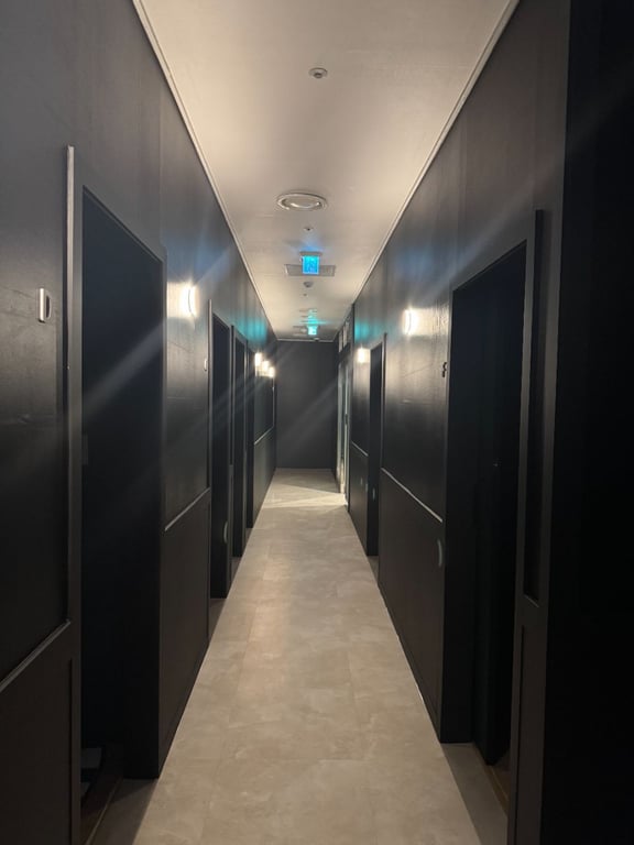 2인실(현재 1인실로 사용중) 2개, 1인실 3개, 대기실 1개, 샤워실 2개, 남자 소변실 1개, 세탁실, 흡연실, 창고, 실장실, 부엌, 각방 냉난방 가능